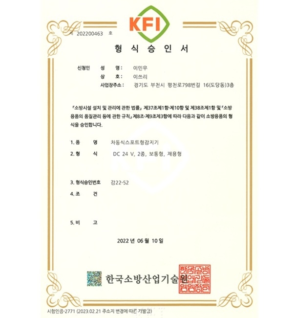 형식승인번호: 감22-52