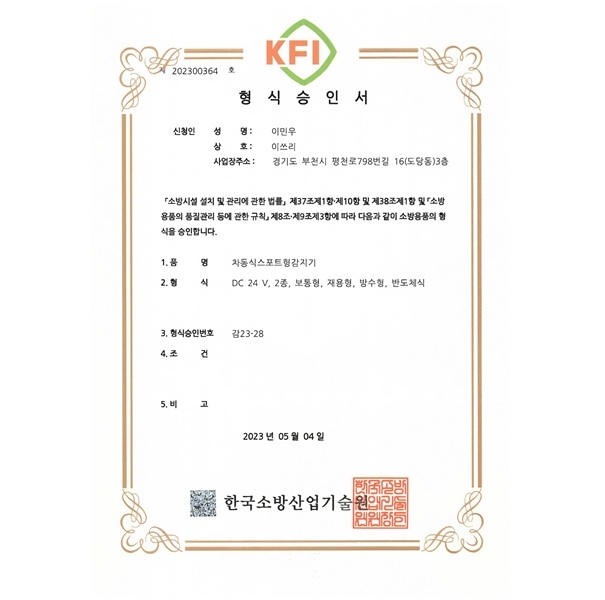 ㆍ형식: DC24V,2종,보통형,재용형,반도체식