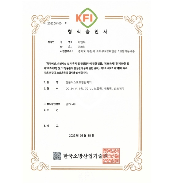 ㆍ형식: DC24V,1종, 70℃, 보통형,재용형,반도체식