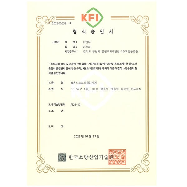 ㆍ형식: DC24V,1종, 70℃,보통형,재용형,방수형,반도체식