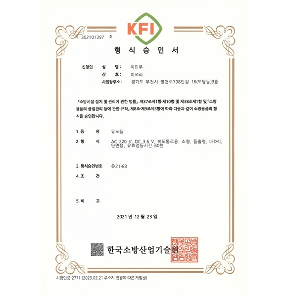 ㆍ형식: AC220V,DC3.6V,복도통로용,소형,돌출형,LED식,단면용