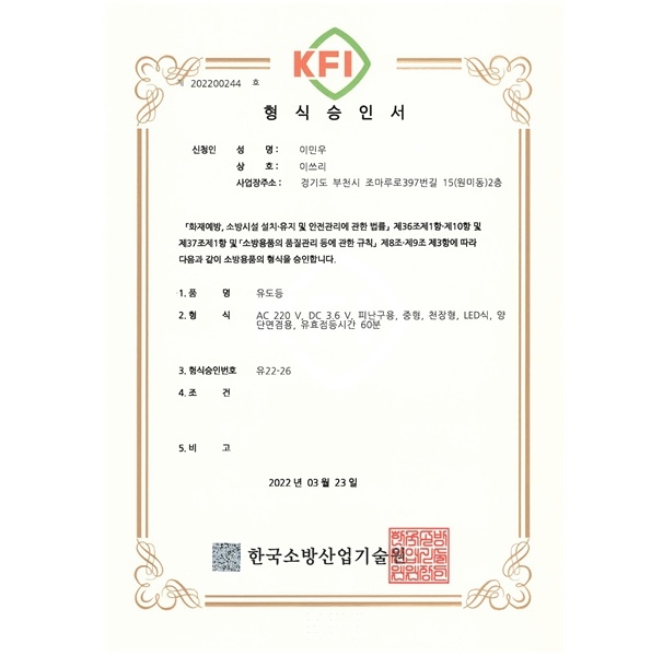 ㆍ형식: AC220V,DC3.6V,피난구용,중형,천장형,LED식,양단면겸용