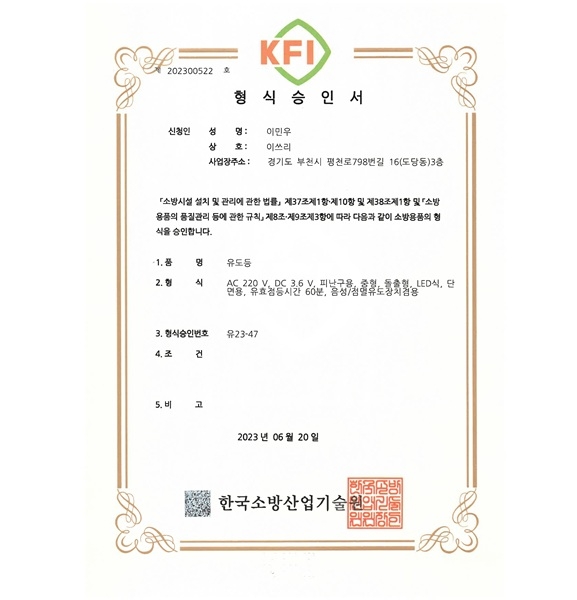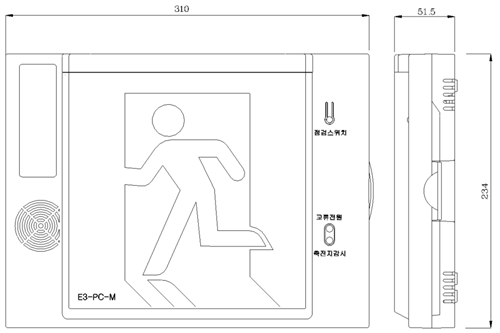 ㆍ형식: AC220V,DC3.6V,피난구용,중형,돌출형,LED식,단면용,음성/점멸유도장치겸용