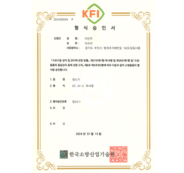 형식승인번호: 발24-1